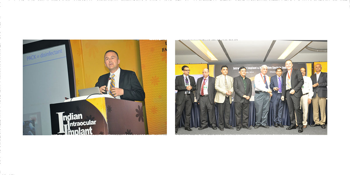 Farhad Hafezi receives the 2014 IIRSI Gold Medal from IIRSI President Amar Agarwal, for his efforts to introduce corneal cross-linking into clinical ophthalmology.