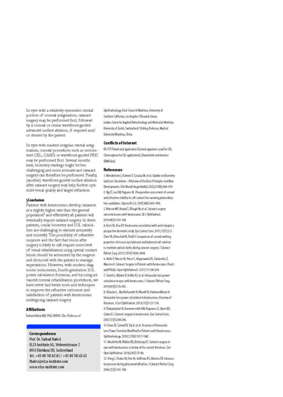 At the ELZA Institute, cataract surgery in keratoconus is approached as part of a staged, cornea-first strategy when indicated. The reviewed evidence underscores that careful planning, realistic counseling, and individualized sequencing of corneal and lenticular procedures are essential to achieving clinically meaningful outcomes in this complex patient group.