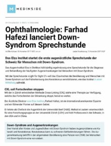 Um die Bevölkerung, und insbesondere auch Menschen mit Down-Syndrom, auf die Früherkennung des Keratokonus zu sensibilisieren, weiht das ELZA Augen-Institut in Dietikon die Light for Sight 21 Sprechstunde am 10. November, dem Welt-Keratokonus-Tag, ein. Diese von nun an regelmässig abgehaltene Sprechstunde konzentriert sich auf die Diagnose und Behandlung der häufigsten Augenerkrankungen bei Menschen mit Down-Syndrom, einschliesslich des Keratokonus.