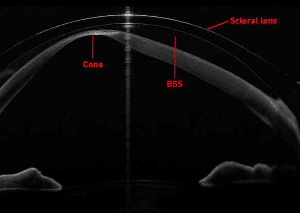 OCT-Bild der Hornhaut mit einer angepassten skleralen Kontaktlinse