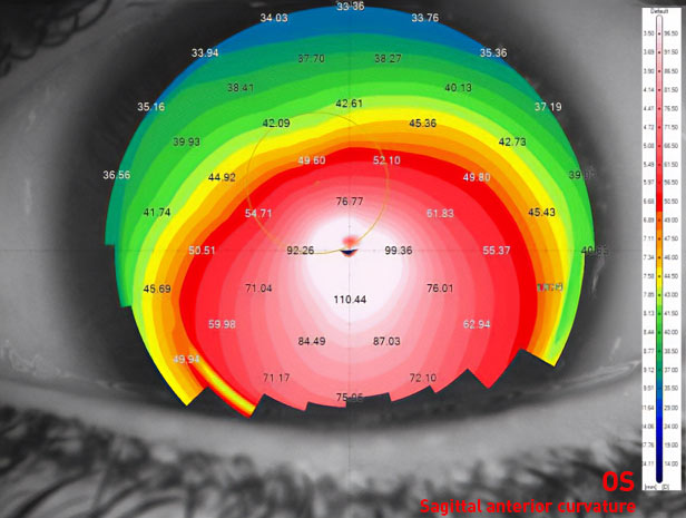 Vier Jahre nach der Anpassung der Sklerallinse hat derselbe Patient dank der Sklerallinse eine Sehschärfe von 0,63. Ein beeindruckendes Ergebnis, um es vorsichtig auszudrücken.