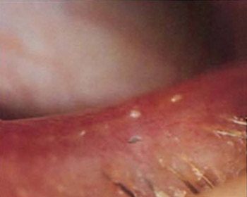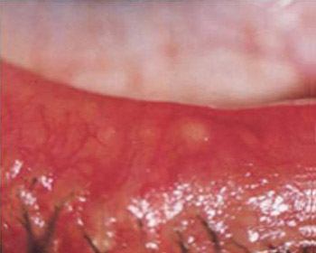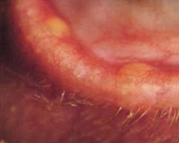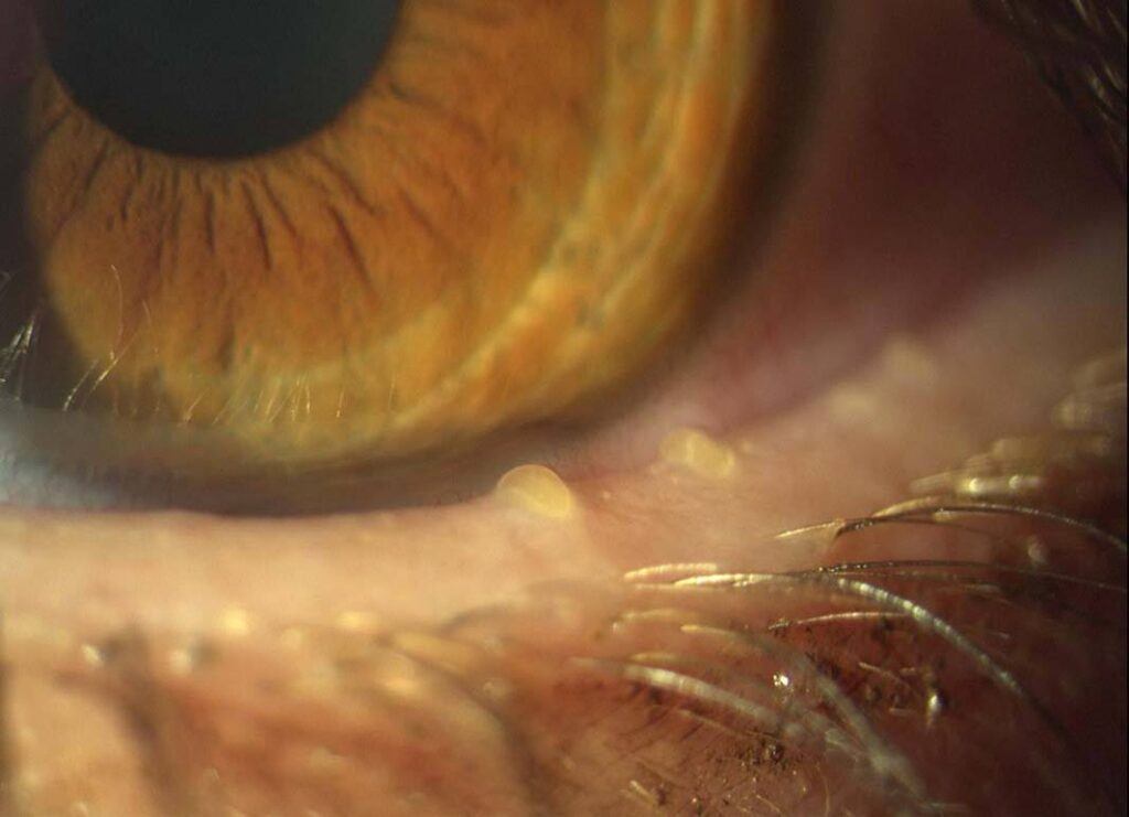 In frühen Stadien zeigen sich “Pfropfen” auf der Lidkante, die die Öffnungen der Talgdrüsen verstopfen. Eine einfache mechanische Reinigung kann hier effizient helfen.