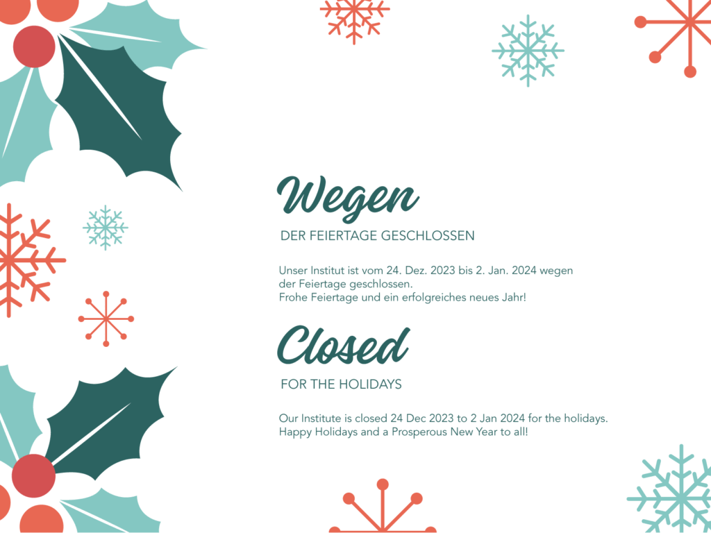 Our Institute is closed 24 Dec 2023 to 2 Jan 2024 for the holidays.