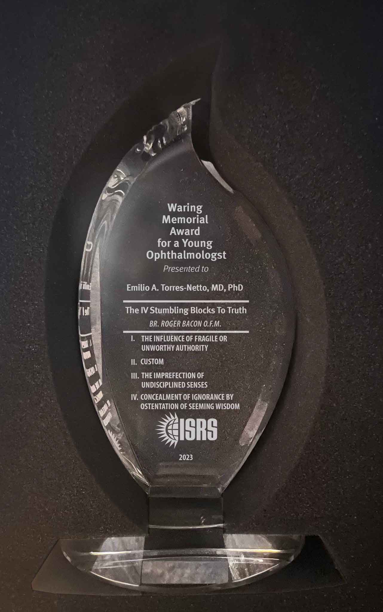 The ELZA Institute, a centre of ophthalmological innovation, proudly announces that the work of our highly regarded colleague, Dr. Emilio A. Torres-Netto MD, PhD, FWCRS, has been recognised with the 2023 Waring Memorial Award. This prestigious accolade is presented by the International Society of Refractive Surgery (ISRS) to an early-career member who has shown remarkable commitment to the society and the broader field of refractive surgery.