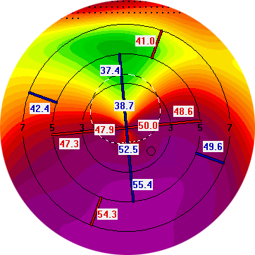 A 42-year old mother was asked to bring her 14-year old son in for screening. The son’s uncorrected vision was still 100%, but a beginning peripheral keratoconus was detected.