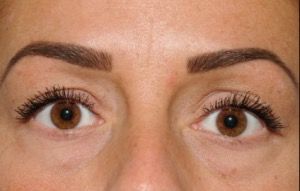 Lower eyelids after the Hamra technique: better filling of the eye socket edge resulting in fewer bags under the eyes (reproduced with patient’s permission)