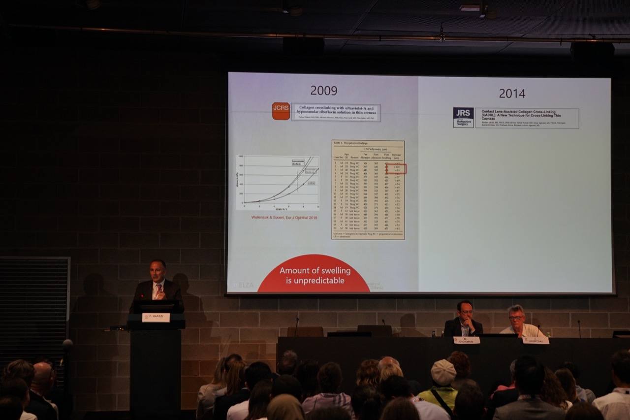 The ELZA team of surgeons and researchers were all in attendance, and today saw Prof. Hafezi give the attending delegates a lecture on “How to treat thin corneas”, where he examined the history of performing corneal cross-linking (CXL) for the treatment of corneal ectasias like keratoconus. He then brought delegates up-to-date on the research that has been performed over the years to improve how thin corneas are cross-linked. Finally, Prof. Hafezi demonstrated the results of the latest thin cornea cross-linking protocol, sub400, developed by ELAZA, which simplifies the process, and can let surgeons, for the first time, cross-link corneas that are as thin as 200 µm.
